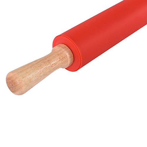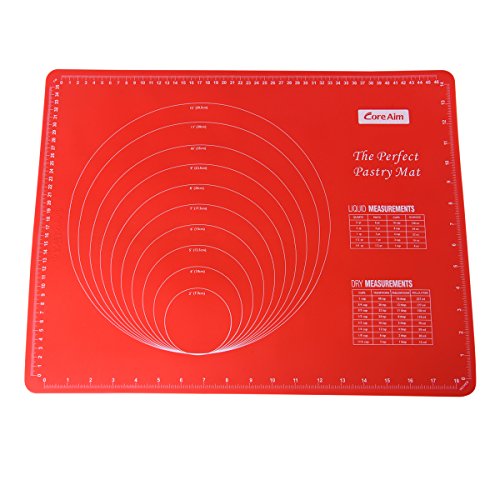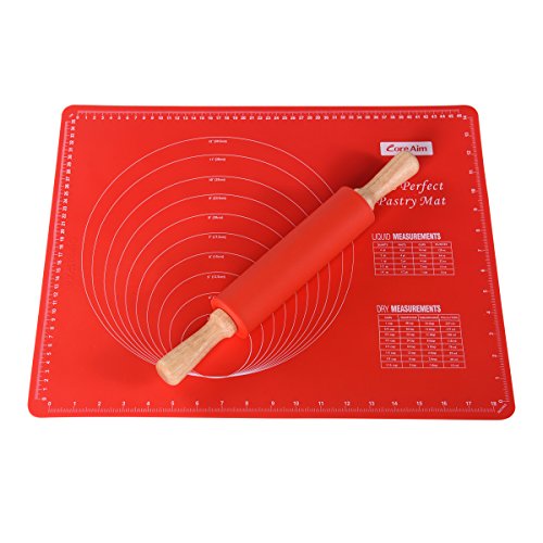 Core Aim Silicone Baking Mats with Measurements, Pastry Mat, Cookie Sheet Non-stick for Rolling Dough and Fandant with 1pc Silicone Rolling Pin, FDA approved,Red