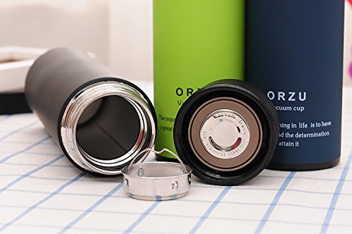 ORZU Travel Mug - TEA INFUSER Bottle - Insulated HOT COFFEE THERMOS - Cold FRUIT INFUSED Water Flask - Food grade LEAK PROOF Tumbler Double wall Stainless Steel 17oz