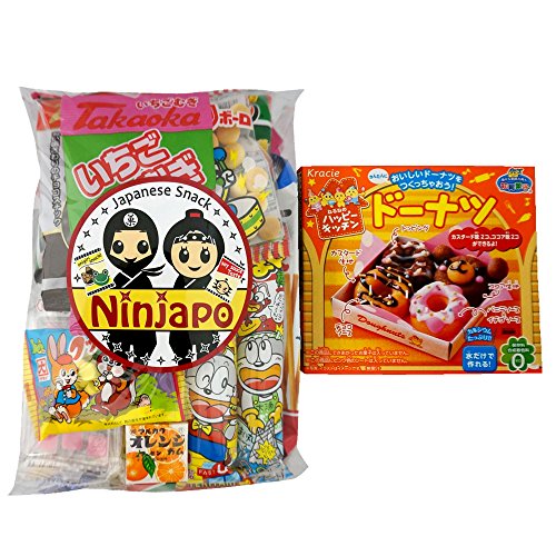 -. Binding : Misc. -. Brand : Ninjapo -. EAN : 4562417998784 -. Feature : "Dagashi" is a Japanese cheap sweets and snacks popular among children. / Assorted 20 Packs of Dagashi & 1 intelligence-developing confectionery / Suitable for party goods, free gift, tea break and so on. / Economical pack to share with friends and families. / Made in Japan -. ProductGroup : Grocery -. ProductTypeName : GROCERY -. Title : Kracie Happy Kitchen Donuts & Japanese Snacks "Dagashi" 20pcs Set Ninjapo Package Sweets Candy