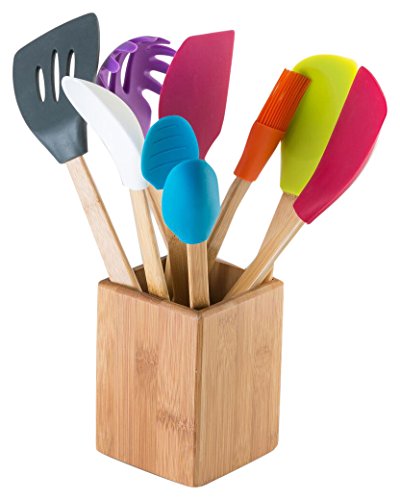 -. Title : Modernhome 9 Piece Assorted Colors Heat-Resistant Silicone Kitchen Tool Set, Bamboo/Natural