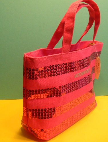 -. Feature : Victoria's Secret MINI Canvas Bling Sequins Hot Pink Purse Tote Handbag / Authentic - Brand New with Tag / Double handles;Open top / Size Approximately: 12"L x 7.5" X 3"D / STRAP DROP 4" INTERIOR WITH COATING(WATERPROOF)