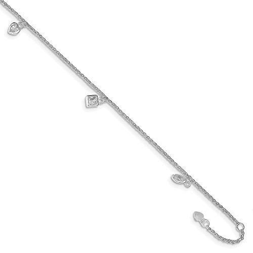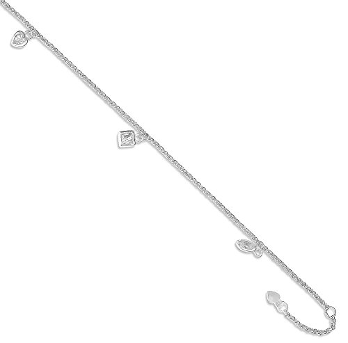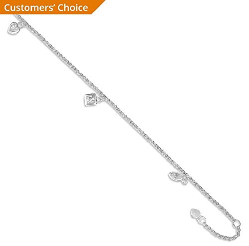 -. Title : ICE CARATS 925 Sterling Silver 9 10 Inch Adjustable Chain Plus Size Extender Hanging Cubic Zirconia Cz Charms Anklet Ankle Beach Bracelet Fine Jewelry Gift Set For Women Heart