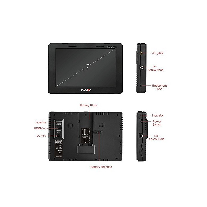 원본상품명: Andoer Viltrox DC-70II 1024 * 600 7 Clip-on Color TFT LCD HD Monitor HDMI AV Input for DSLR Camera