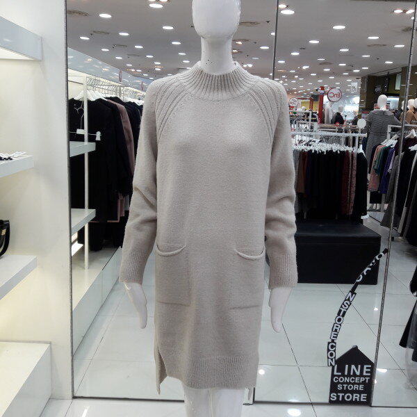 18년 신상 포켓이 사랑스러운니트 원피스입니다 반목폴라에 끝단 트임과 뒷길이감이 살짝 더 긴 세련된 디자인입니다 데이트룩 평상룩으로 추천합니다