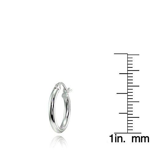 Hoops & Loops Sterling Silver 2mm High Polished Round Hoop Earrings, 15mm