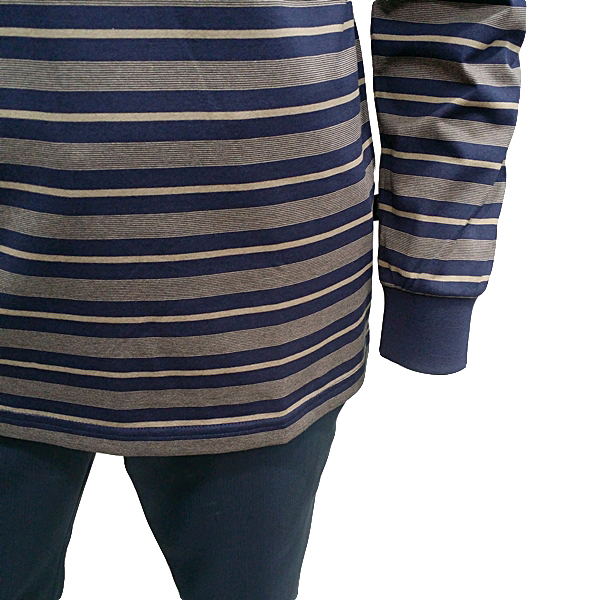 면혼방 소재를 사용한 스트라이프 패턴으로 점퍼안에 캐주얼하고 무난하게 매치할수 있는 티셔츠