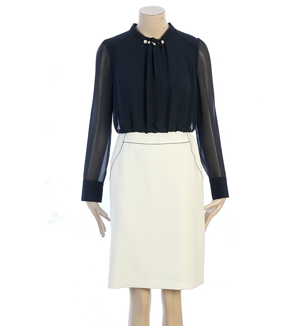 넥부분 주름과 장식으로 포인트를주어 세련스러운 분위기를 느낄수있는 디자인입니다