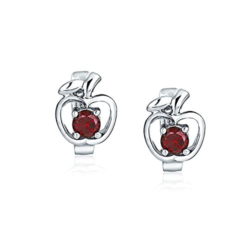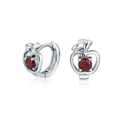 Our endearing sterling silver apple earrings are just what the doctor ordered. With a simulated garnet CZ sparkling from the core, our silver hoop earrings are a perfect gift of January birthstone earrings for winter babes. Sparkling bright in rhodium plated sterling silver, our fashion jewelry earrings are a glam choice in cubic zirconia jewelry.