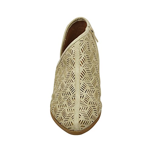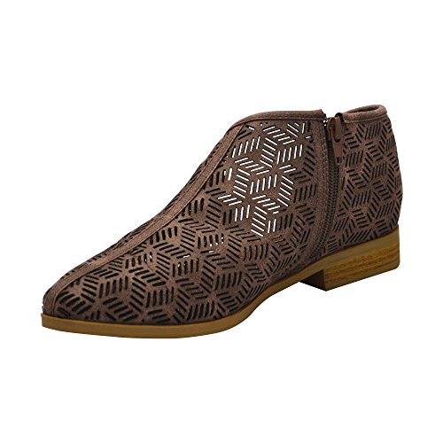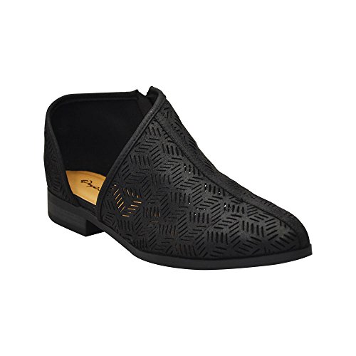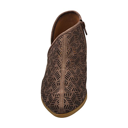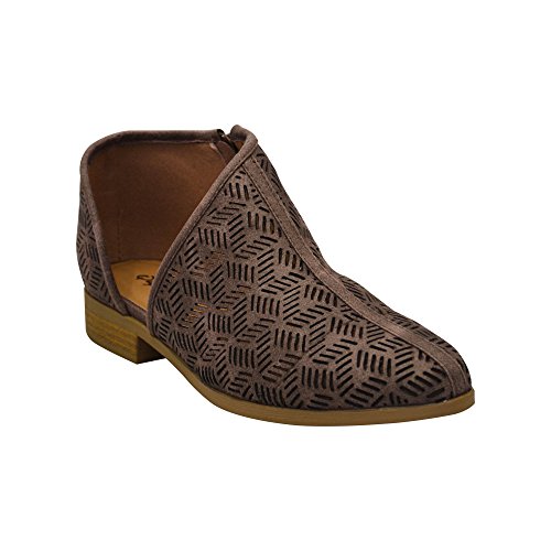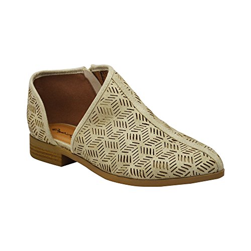 Product Description This oxford flat features a perforated vegan nubuck leather, pointy toe, low block heel, and an open shank design. Finished with a lightly padded insole and side zipper closure.. Heels 1" 0