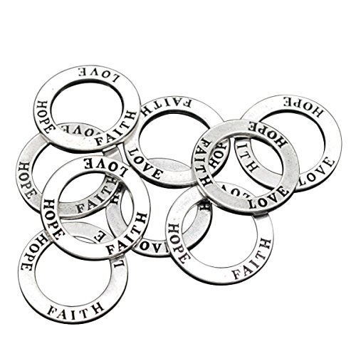 FAITH HOPE LOVE 20 Pc Circle Washer Charm Connector Affirmation Ring Jewelry