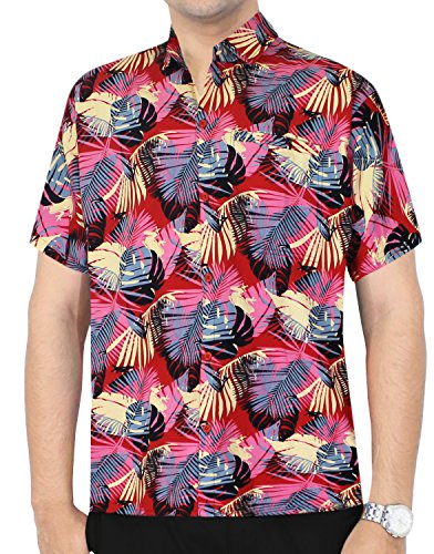 -. Title : La Leela Men's Aloha Hawaiian Shirt Short Sleeve Button Down Casual Beach Party Red