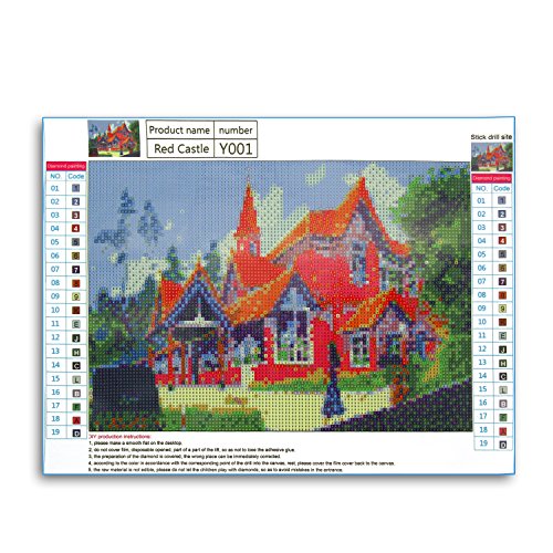 Lostart 5D Diamond Painting for Adult, Paint by Number Kits, Crystal Rhinestone Diamond Embroidery Paintings Pictures Arts Craft for Home Wall Decor, Full Drill (Red Castle)