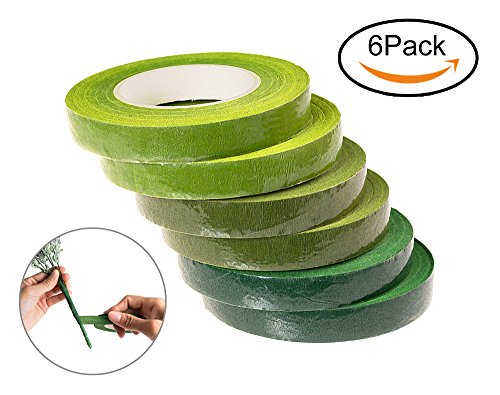 U-star 6 Rolls Green Floral Tape Stem Wrap Tape For Bouquet Stem Wrap 1/2" x 30 Yards Florist Stem Wrap