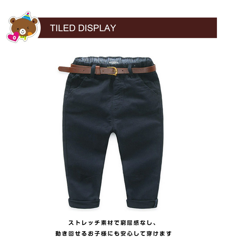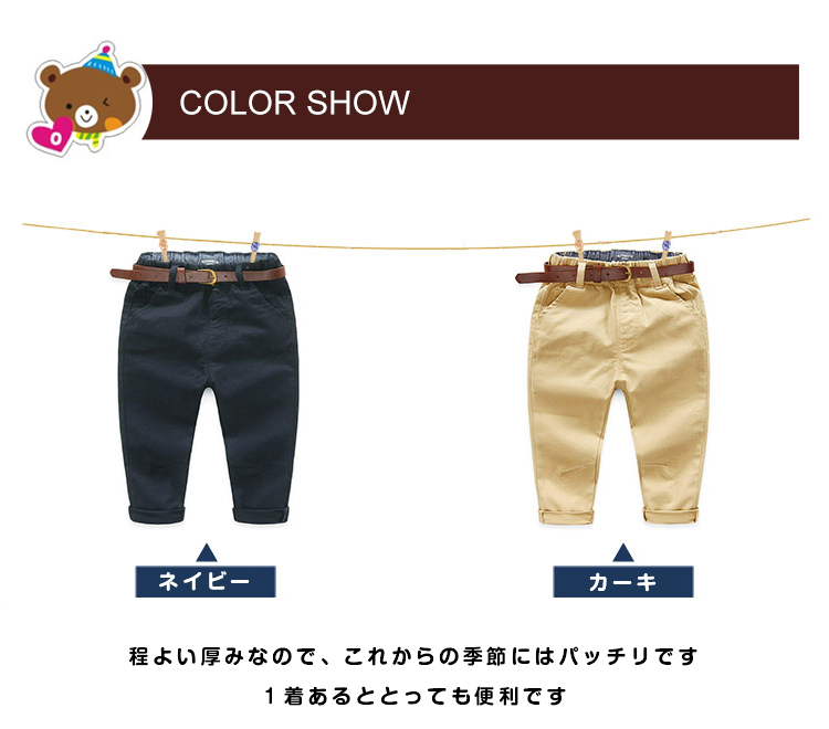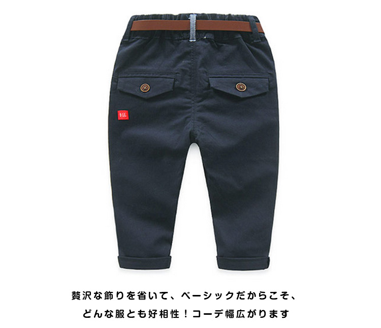 | シンプルで上品さを漂う子供チノパンツストレッチ素材で窮屈感なし、動き回せるお子様にも安心して穿けます程よい厚みなので、これからの季節にはパッチリです贅沢な飾りを省いて、ベーシックだからこそ、どんな服とも好相性!コーデ幅広がりますデイリー使いはもちろんのこと、結婚式、パーディーなどフォーマルシーンもオススメです。1着あるととっても便利です | |