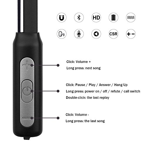 Easy Button Control Unlike ordinary Bluetooth earbuds for running and workouts, this comfort-fit earbuds allows for easy and accurate one-touch control located on the neckband, no need to take off the earbuds.