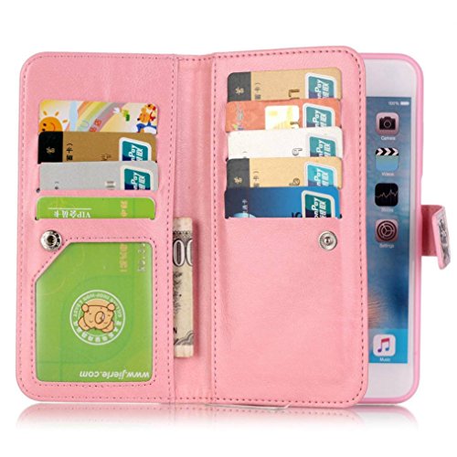 -. Feature : Compatible for iPhone 6 / iPhone 6S Plus 5.5inch / Made of leather material, while its soft interior safeguards and cleans the screen / Built-in Many credit card slots and 2 cash pocket, available for credit cards or business cards and cash. / Button flip design, with inner case, holds your cell phone in a secure way. / Inner Case is a removable case, connect this Clutch by magnet, and it can be removed individually using