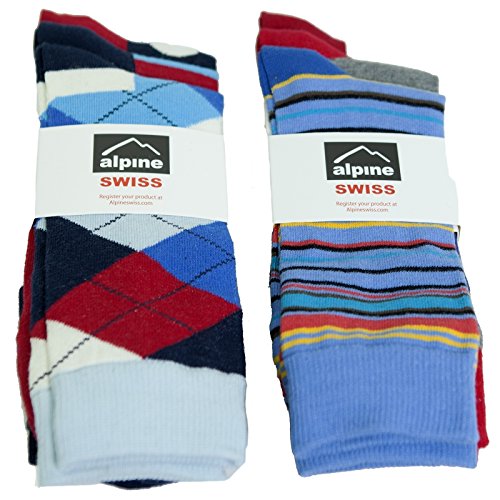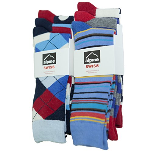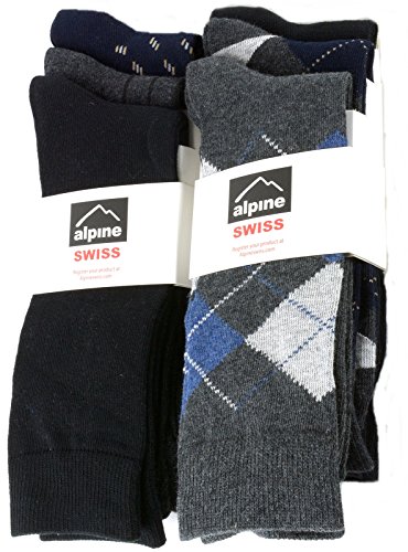 -. Title : Alpine Swiss Men's Cotton 6 Pack Dress Socks Solid Ribbed Argyle Shoe Size 6-12