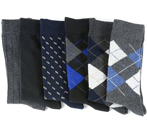 -. Feature : 6 Pack Contains The perfect mix of Argyle, Ribbed and Solid Patterns / Mid Calf Length, Approximately 10" Shaft Height / Fits Shoes Sizes 6-12 (Sock Size 10-13) / Comfortable Elastic & Breathable Cotton Blend / 73% Cotton, 26% Polyester, 1% Elastane