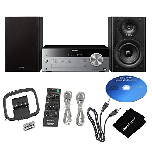 This Bundle includes: Sony Micro Music Stereo System, Remote Control, AA Alkaline Batteries, AM/FM Antenna, Speaker Cable, Speaker Pads, Auxiliary Cable, Xtech CD Lens Cleaner, HeroFiber® Ultra Gentle Cleaning Cloth & Operating Instructions