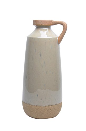 Benzara Lustrous Ceramic Decorative Jar with Handle, Beige
