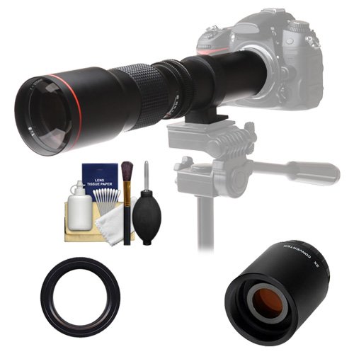 Vivitar 500mm f / 8.0망원 렌즈with 2x Teleconverter ( = 1000mm ) +키트for Nikon d3200, d3300, d5300