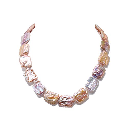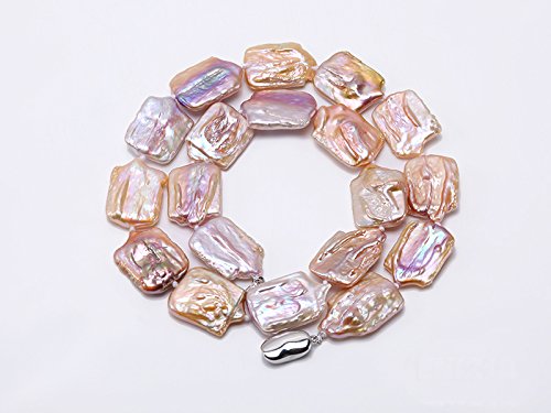 Chic 16.5×25-17×25mm light lavender baroque pearl necklace. The pearl necklace is 19 inches long and closed by a solid gilt clasp.