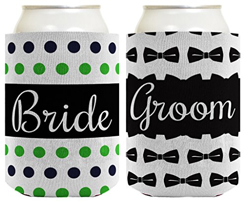 Wedding Coolie Bride Groom Marriage Bowtie Polka Dots Bridal Shower Gift 2 Pack Can Coolie Drink Coolers Coolies Premium Full Color