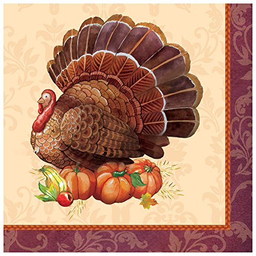 -. Feature : 16-Count package of 2-ply paper lunch napkins / Approximately 6.5 x 6.5-inch folded; made in the USA / Elegant turkey and harvest vegetables / Great for a Thanksgiving feast / Look for Thanksgiving Elegance tableware and coordinating Touch of Color solids Burgundy and Ivory