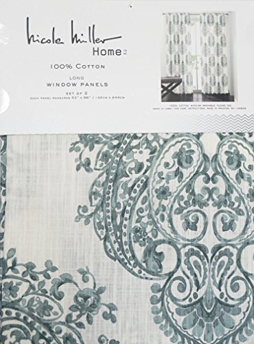 Nicole Miller Set of 2 Window Curtain Panels Blue / Gray with a Touch of Green Scroll Medallions on a White Background Each Curtain Measures 52" x 96" 100% Cotton -- Machine Washable Brand : Nicole Miller EAN : 0600346865938