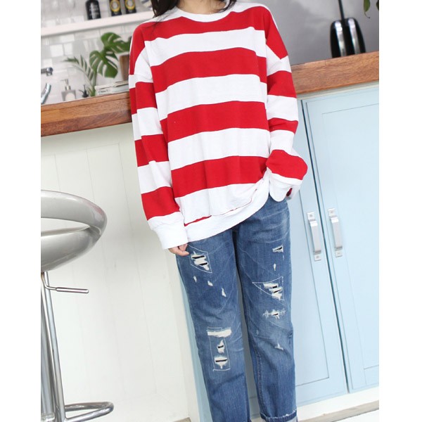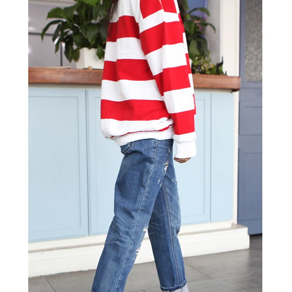 王道のカジュアルボーダーは、デニムボトムとの相性は抜群!