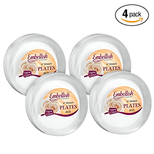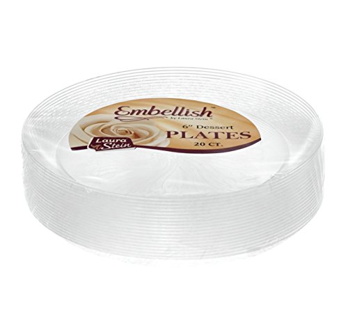 Embellish Clear Premium Hard Plastic Party Plates, Scrollware 6’’ Inch Clear Dessert Plates 20 Count Pack of 4 (80 Plates total)
