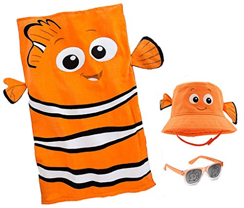 Finding Nemo bundle includes 1 swim hat, 1 towel and 1 pair sunglasses.