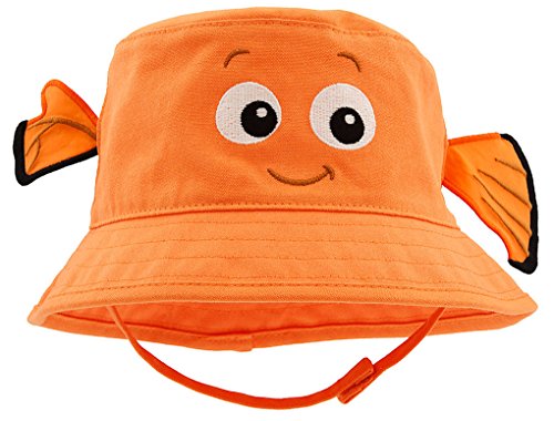 Things will go swimmingly well for your little fish when they're wearing this cute Nemo Swim Hat. The little clown fish's odd-sized fins stick out from the side of this cotton hat that provides UPF 50+ protection on sunny days. And you'll frequently find baby clowning around on Nemo's thirsty terrycloth swim towel, complete with plush fin appliqués, embroidered accents, and personalization option. And they'll have no trouble finding Nemo when they look through these sunglasses. The lovable clown fish stands out against the dark lenses that provide 100% UVA and UVB protection for sensitive little eyes.Feature