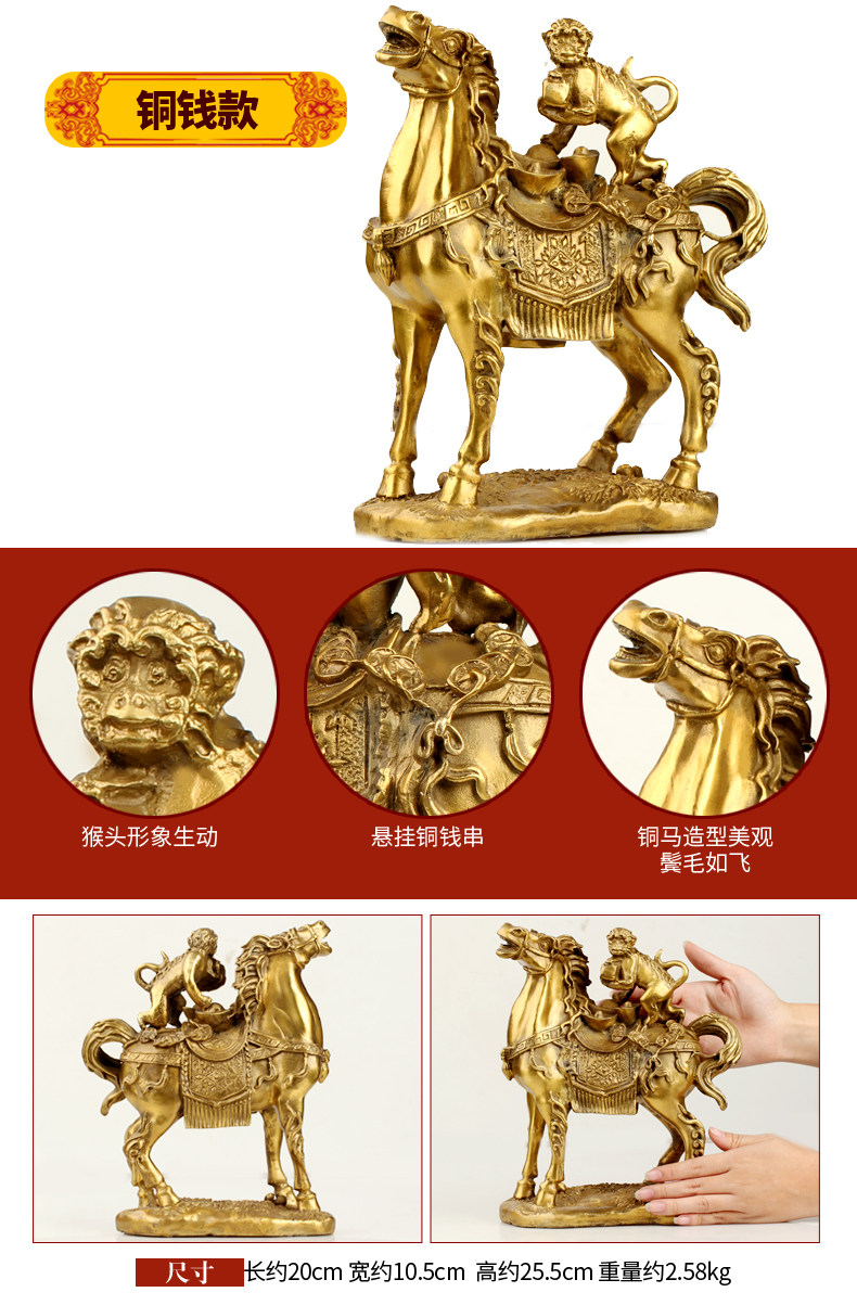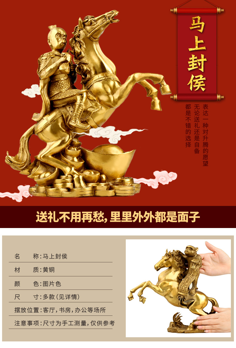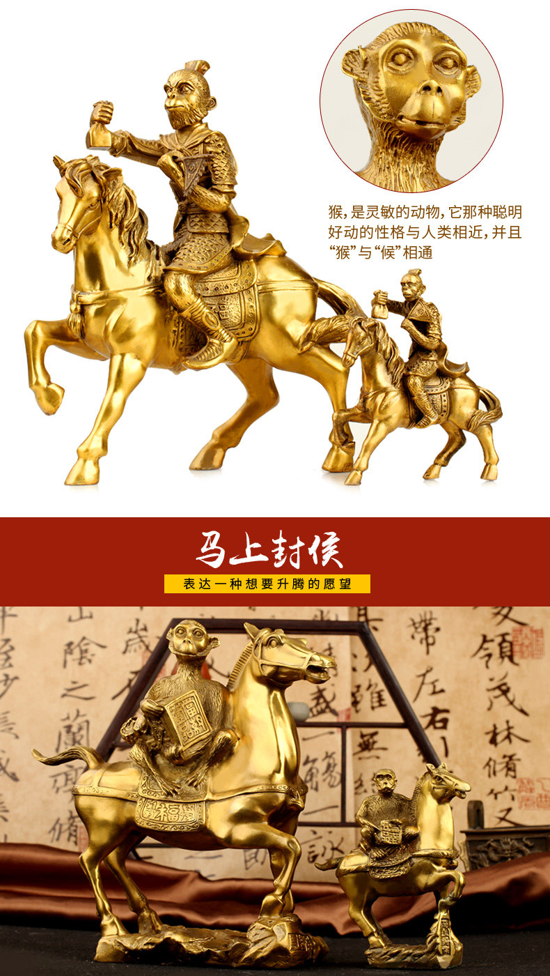 纯铜马上封侯摆件铜猴家居办公室发财马十二生肖马摆设