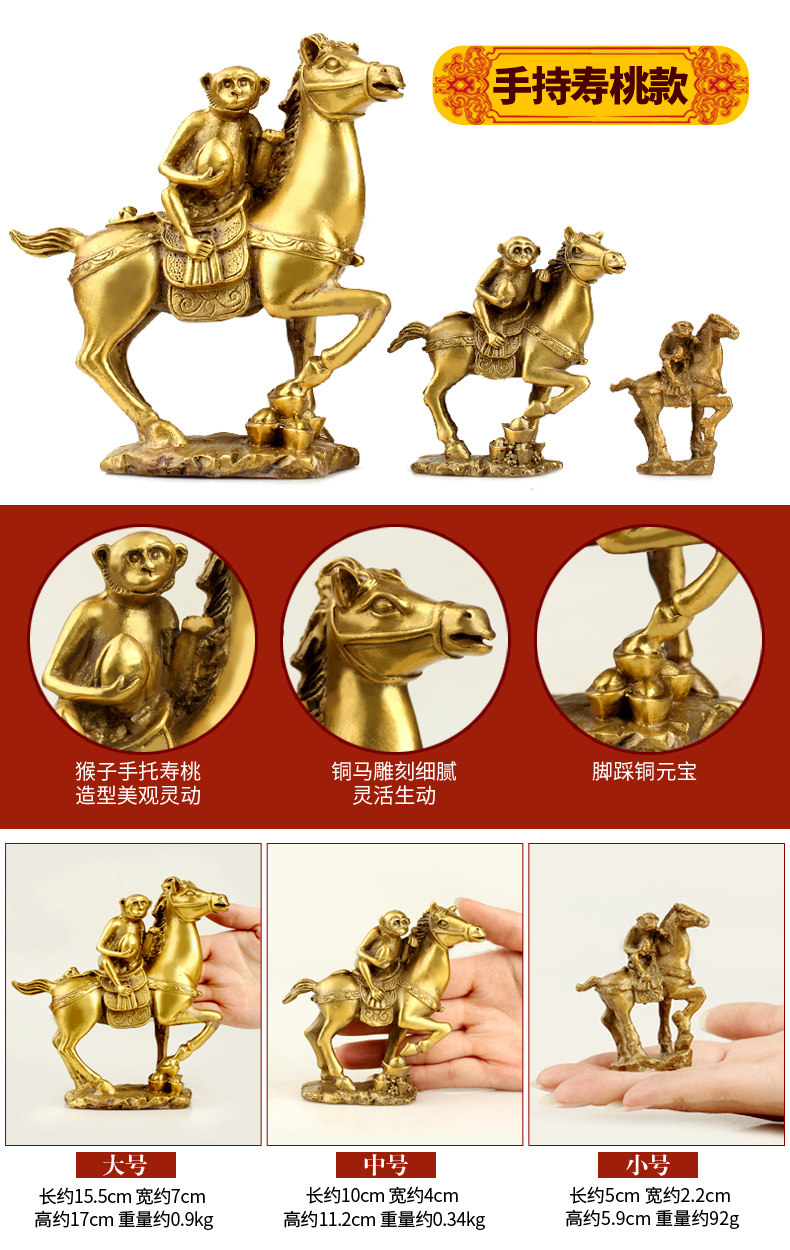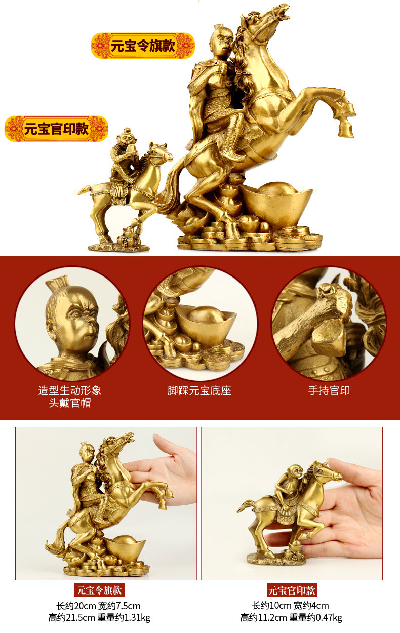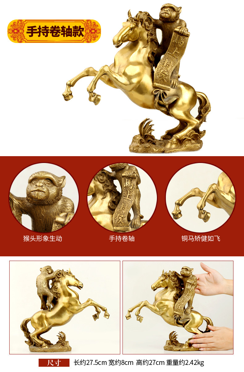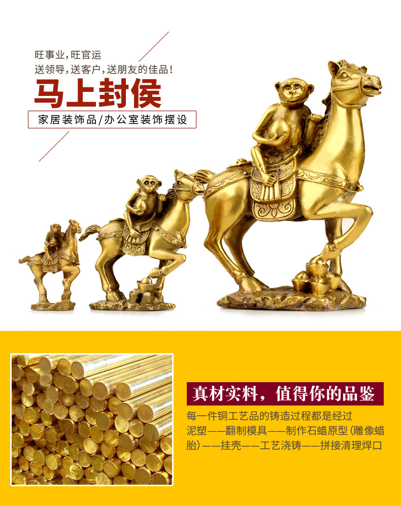 纯铜马上封侯摆件铜猴家居办公室发财马十二生肖马摆设