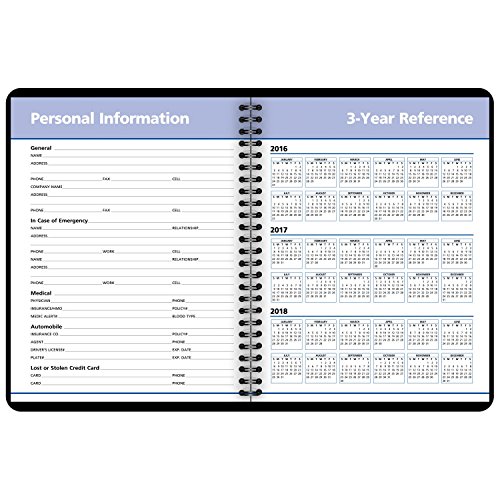 Wirebound. Telephone and Address page to store important contact information. Simulated leather cover available in black with pink ribbon design. Pages printed on quality paper containing 30% post-consumer waste. Page sizes 6.88 in. x 8.75 in.