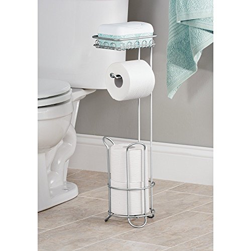 FREE STANDING TOILET ROLL HOLDER: Don't be caught with an empty roll! This beautifully designed toilet tissue holder conveniently stores two extra rolls while dispensing one