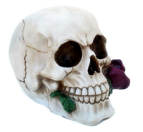 - Title : Realistic Replica Human Skull Statue with Red Rose Sculpture Figure Skeleton Limited