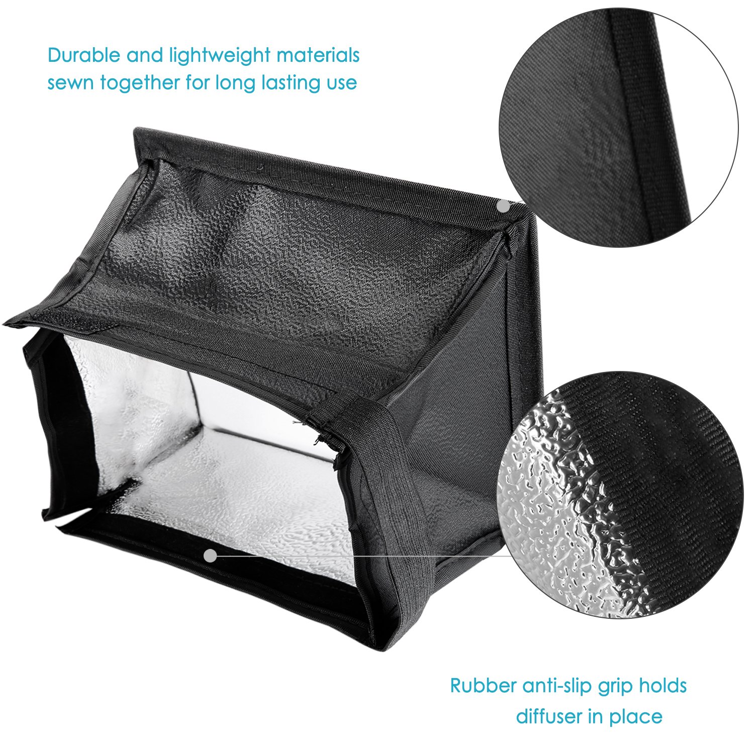 The Neewer diffuser softens the light, creates soft, natural diffused light, and is light, foldable and convenient for carrying.