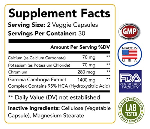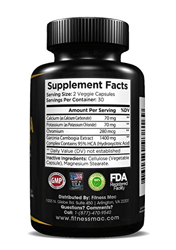 -. Binding : Health and Beauty -. Brand : Fitness Mac -. Color : Black -. EAN : 0762470938169 -. Feature : 100% PURE GARCINIA CAMBOGIA EXTRACT WITH 95% HCA - Our supplement has the highest HCA potency on the market for the quickest results possible - 1,400 mg per serving! / FAT BURNER, APPETITE SUPPRESSANT, CARB BLOCKER - Highly effective at suppressing bad food cravings, blocking carbs and quickly aiding in weight loss. Our Garcinia Cambogia is hands down the safest and most effective diet pill for men and women! / MADE IN THE USA IN AN FDA APPROVED FACILITY - Most competitors use oversea's non-registered, non-approved facilities. Not Fitness Mac! All of our products are made in the USA in FDA approved and regulated facilities. Quality you can count on and safety you can trust! / SAFE, ALL NATURAL, VEGAN FRIENDLY, GMO FREE, STIMULANT FREE - Made without any stimulants or caffeine. No anxiety, no jitters, no crash. Feel great all day! / RISK FREE - Absolutely love it or receive a 100% money back guarantee! -. IsAdultProduct : 0 -. Label : Fitness Mac -. LegalDisclaimer : * These statements have not been evaluated by the Food and Drug Administration. This product is not intended to diagnose, treat, or cure any disease. -. Manufacturer : Fitness Mac -. MPN : GC50806-60 -. PackageQuantity : 1 -. PartNumber : GC50806-60 -. ProductGroup : Health and Beauty -. ProductTypeName : HEALTH_PERSONAL_CARE -. Publisher : Fitness Mac -. Size : 2.5 x 2.5 x 5 inches -. Studio : Fitness Mac -. Title : 100% Pure Garcinia Cambogia Extract with 95% HCA - Carb Blocker, Appetite Suppressant and Weight Loss Supplement - 60 Safe and Effective Diet Pills -. UPC : 762470938169
