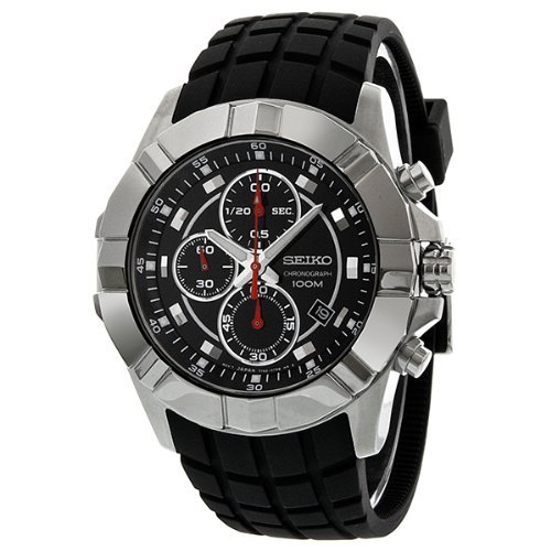 세이코import 세이코 Mens Stainless Steel Case Rubber Strap Black Dial Chronograph 남성 맨즈 손목시계 【병행수입품】