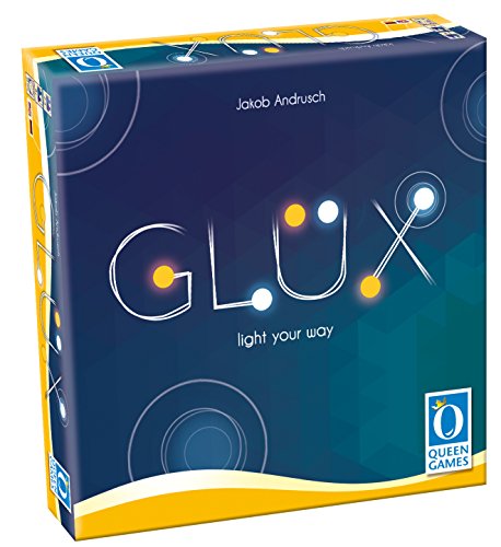 -. Binding : Toy -. Brand : Queen Games -. EAN : 4010350102213 -. Feature : Family game / Beginners to advanced players / Minutes to learn, lifetime to master / Made in Europe / Playing time: 30 minutes -. IsAdultProduct : 0 -. Label : Queen Games Direct Import -. Manufacturer : Queen Games Direct Import -. Model : 10221 -. MPN : 10221 -. PackageQuantity : 1 -. PartNumber : 10221 -. ProductGroup : Toy -. ProductTypeName : TOYS_AND_GAMES -. Publisher : Queen Games Direct Import -. Studio : Queen Games Direct Import -. Title : Glüx Board Game -. Warranty : No Warranty