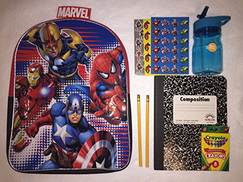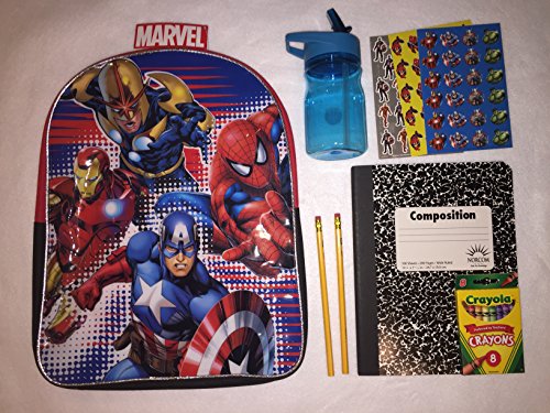-. Binding : Toy -. Brand : Marvel -. Color : PINK -. EAN : 0712038147922 -. Feature : Backpack - This is one of the school years most popular backpacks, keep your kids in style and excited about school with Marvel's Avengers Super Heroes! / Notebook - This composition is the most commonly required essential notebook / Crayons & Pencils - 3 pencils included with designs and a box of crayons, 8 count. / Water Bottle - Keep your kids hydrated with a bpa free easy to drink 12 ounce water bottle -. IsAdultProduct : 0 -. Label : Trusted Products -. Manufacturer : Trusted Products -. ProductGroup : Toy -. ProductTypeName : TOYS_AND_GAMES -. Publisher : Trusted Products -. Studio : Trusted Products -. Title : Avengers Kid's Backpack - 16" inches - Back to School Bundle - Boys Marvel Travel Bag - K-12 - Superhero Gifts -. UPC : 712038147922