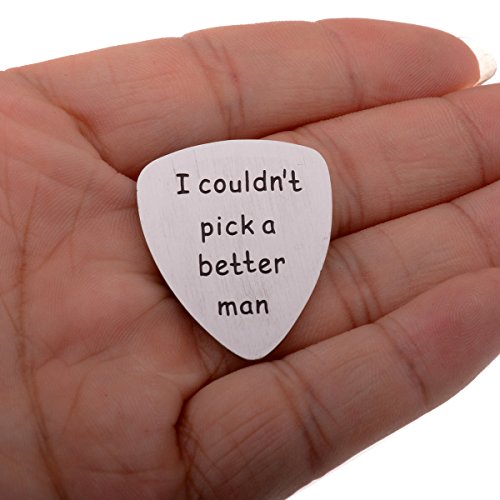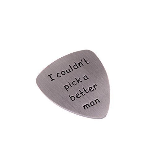 Material : 316L Stainless Steel; no distortion, no damp, no rust ;Bright, shiny, Highest Quality ,Won't change color or get dark. "I couldn't pick a better Man" is hand stamps on this guitar pick. Let that special Man know how much you love him, with this unique gift.