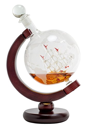 - Feature : TURN SPIRITS OR WINE INTO A WORK OF ART - Desktop decanter shaped like a globe with a glass sailing ship inside it. Makes an eye-catching presentation whether filled with bourbon, whiskey, scotch, vodka, rum or wine / DIMENSIONS - 4.5" x 9" x 6" - IDEAL SIZE 650mL whiskey decanter, large enough to hold the contents of an entire bottle of most spirits and most of the contents of a standard wine bottle / PRESERVES FRESHNESS - Tight fitting glass stopper keeps air out of the globe decanter, so your spirits or wine remain flavorful, and their aromas stay robust until you enjoy them / ARTISAN CRAFTED - The whiskey decanter and wood stand is made entirely by hand; The globe decanter is hand-blown and then carefully etched for a level of quality that is truly unparalleled / NO MORE SPILLS - Bonus bar funnel simplifies filling, so you never lose a drop of what you're pouring into the decanter