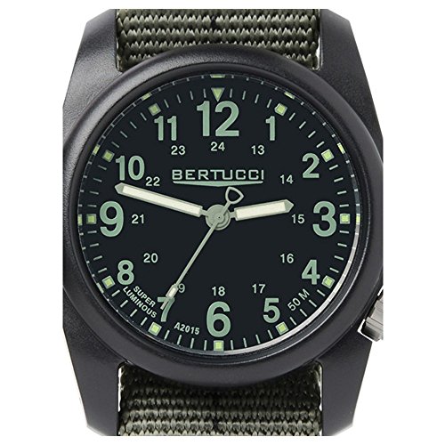 -. Title : Bertucci 11040 DX3 Field Resin Dash-Striped Drab Green Nylon Strap Black Dial Watch