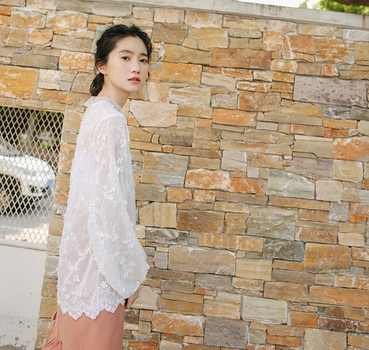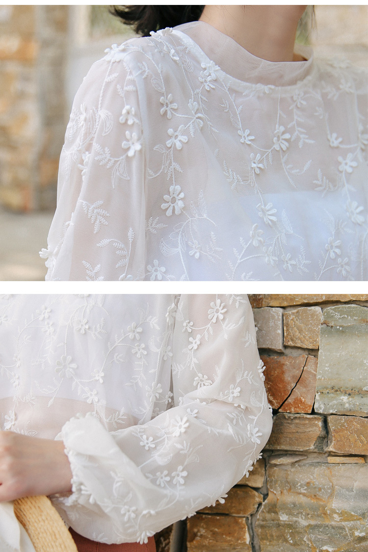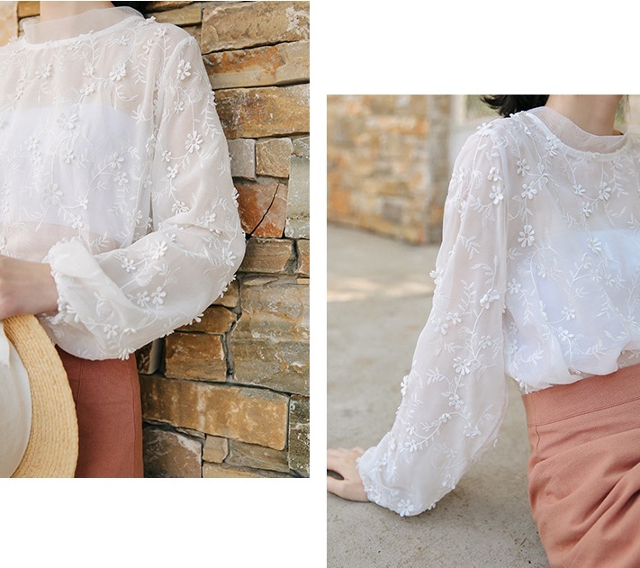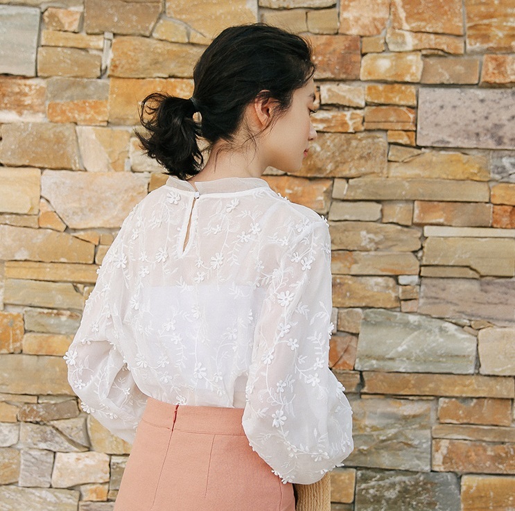 立体感のある花柄を全面にあしらったシフォンブラウスです♪