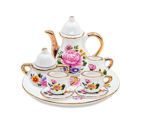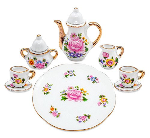 Studio : Dapan Porcelain Factory Publisher : Dapan Porcelain Factory Binding : Toy Product Description Material:porcelain(china) Size(approx.): - Teapot 1.7L x 1W x 2H inch - Sugar 1.2L x 0.8W x 1.1H inch - Creamer 0.7L x 0.6W x 0.7H inch - Plate 2.6L x 2.6W x 0.3H inch - Cup 0.8L x 0.6W x 0.6H inch - Saucer 0.8L x 0.8W x 0.1H inch