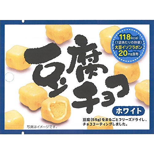 原材料:丸大豆(遺伝子組み換えでない)、ココアバター、砂糖、全粉乳、乳糖、凝固剤、光沢剤、乳化剤(大豆を含む)、香料