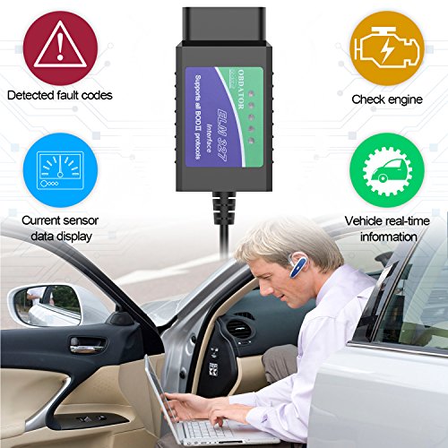 -. Feature : Excellent Compatibility - Compatible with all Gasoline vehicles in OBDII interface, which support 9 OBDII protocols: 1.SAE J1850 PWM(41.6Kbaud) 2.SAE J1850 VPW(10.4Kbaud) 3.ISO9141-2(5 baud init,10.4Kbaud) 4.ISO14230-4 KWP(5 baud init,10.4 Kbaud) 5.ISO14230-4 KWP(fast init,10.4 Kbaud) 6.ISO15765-4 CAN(11bit ID,500 Kbaud) 7.ISO15765-4 CAN(29bit ID,500 Kbaud) 8.ISO15765-4 CAN(11bit ID,250 Kbaud) 9.ISO15765-4 CAN(29bit ID,250 Kbaud). (Not support Hybrid or electric vehicles) / This ELM 327 OBII scanner is latest PC-based scan tool, supports OBD-II protocols and is dispatched with a number of compatible programs. / Smart Scanning - Read and clear car error codes, display current sensor data, including Engine RPM, Calculated Load Value, Coolant Temperature, Fuel System Status, Vehicle Speed, Short Term Fuel Trim, Long Term Fuel Trim, Intake Manifold Pressure, Timing advance, Intake Air Temperature, Oxygen sensor voltages/associated short term fuel trims, Fuel System status, Fuel Pressure. (over 3000 generic code definitions in the database) / Easy to install -- simply extract the files into a folder on your computer's hard drive, and you're ready to go. To uninstall the program, simply delete the entire contents of the folder where the program resides. / Warranty - One Year Warranty! Providing you with the friendliest customer service.Your satisfaction is our goal! Any problem, please contact us.